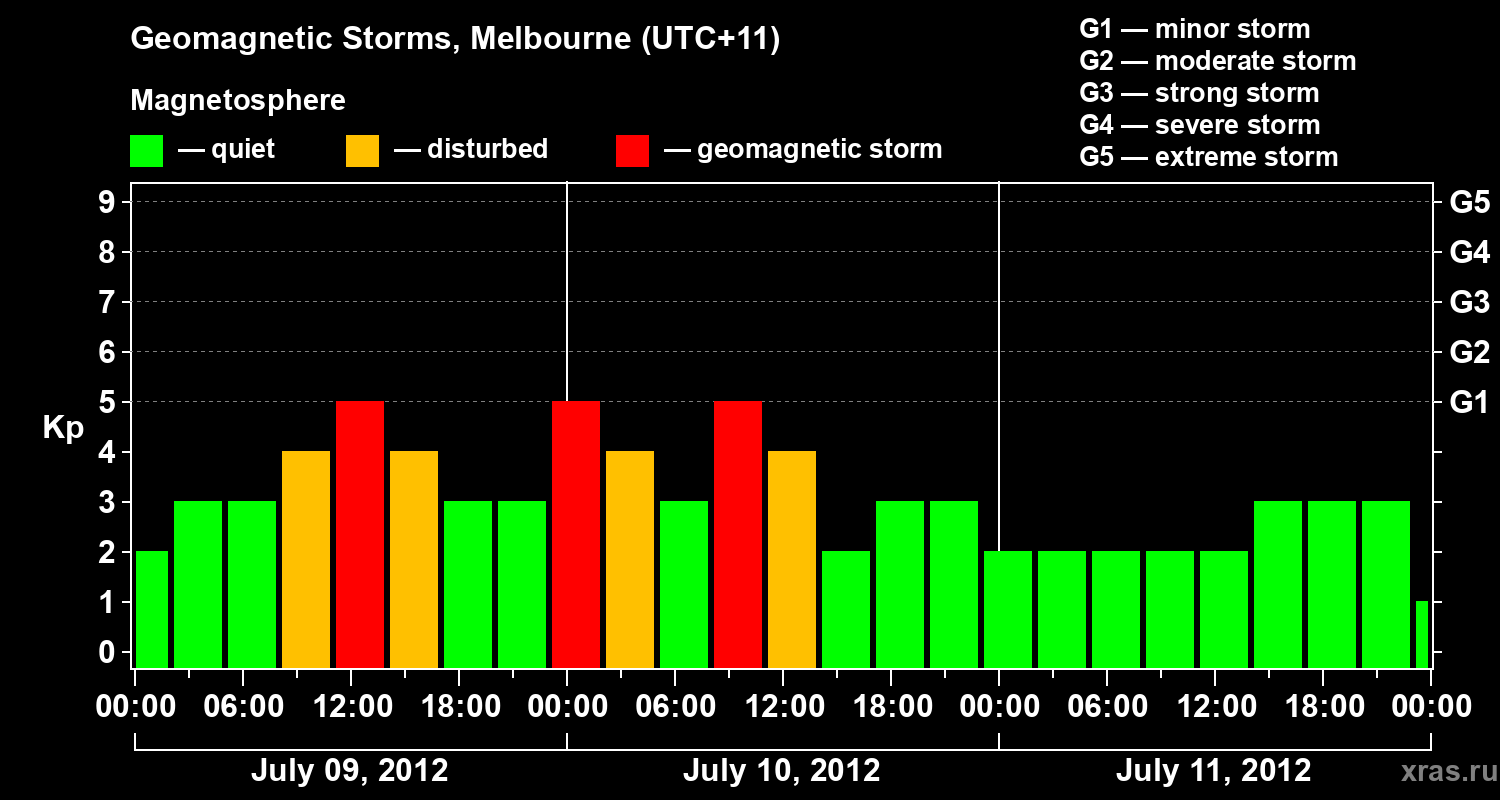 Geomagnetic storms in Melbourne on Jul 11, 2012