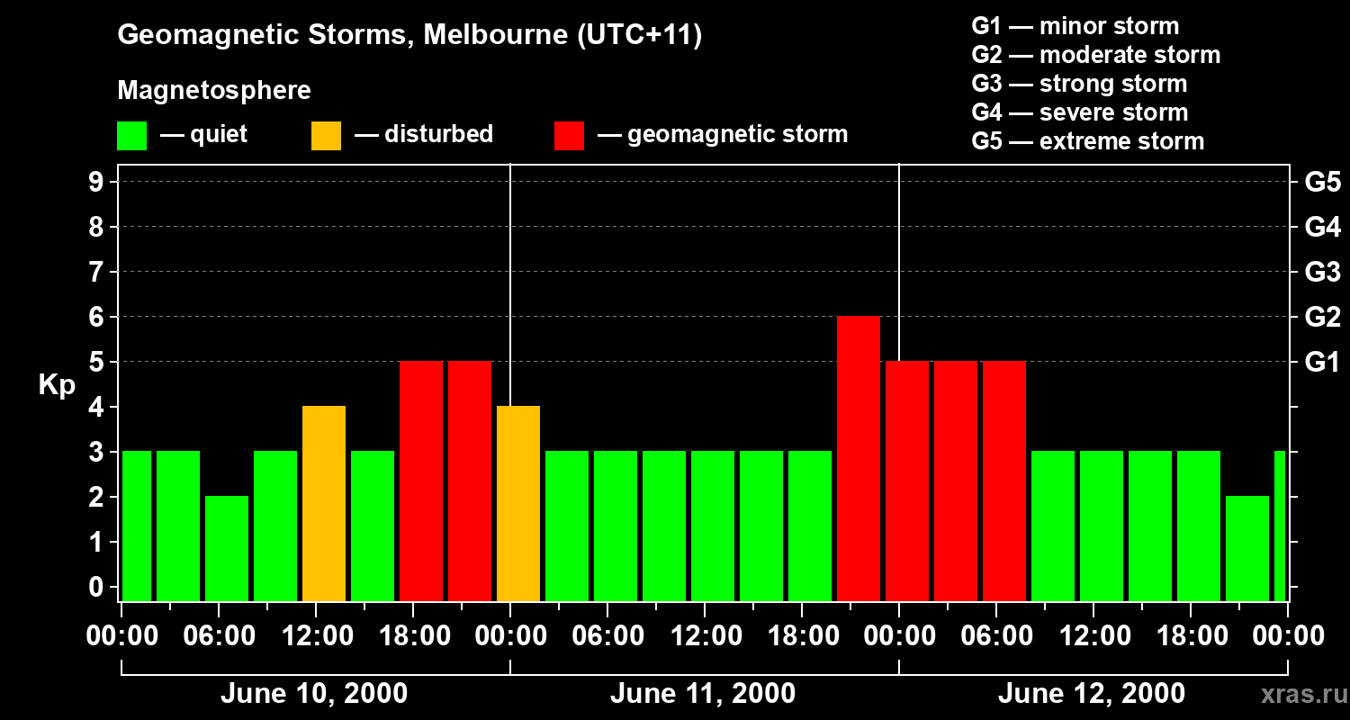 Geomagnetic storms in Melbourne on Jun 12, 2000