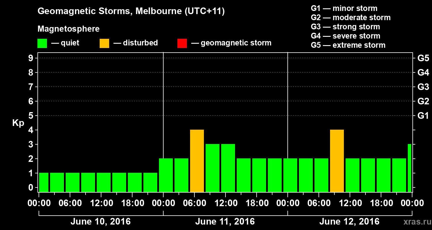 Geomagnetic storms in Melbourne on Jun 12, 2016