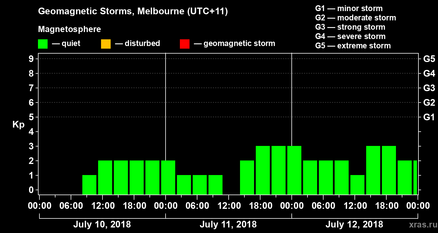 Geomagnetic storms in Melbourne on Jul 12, 2018