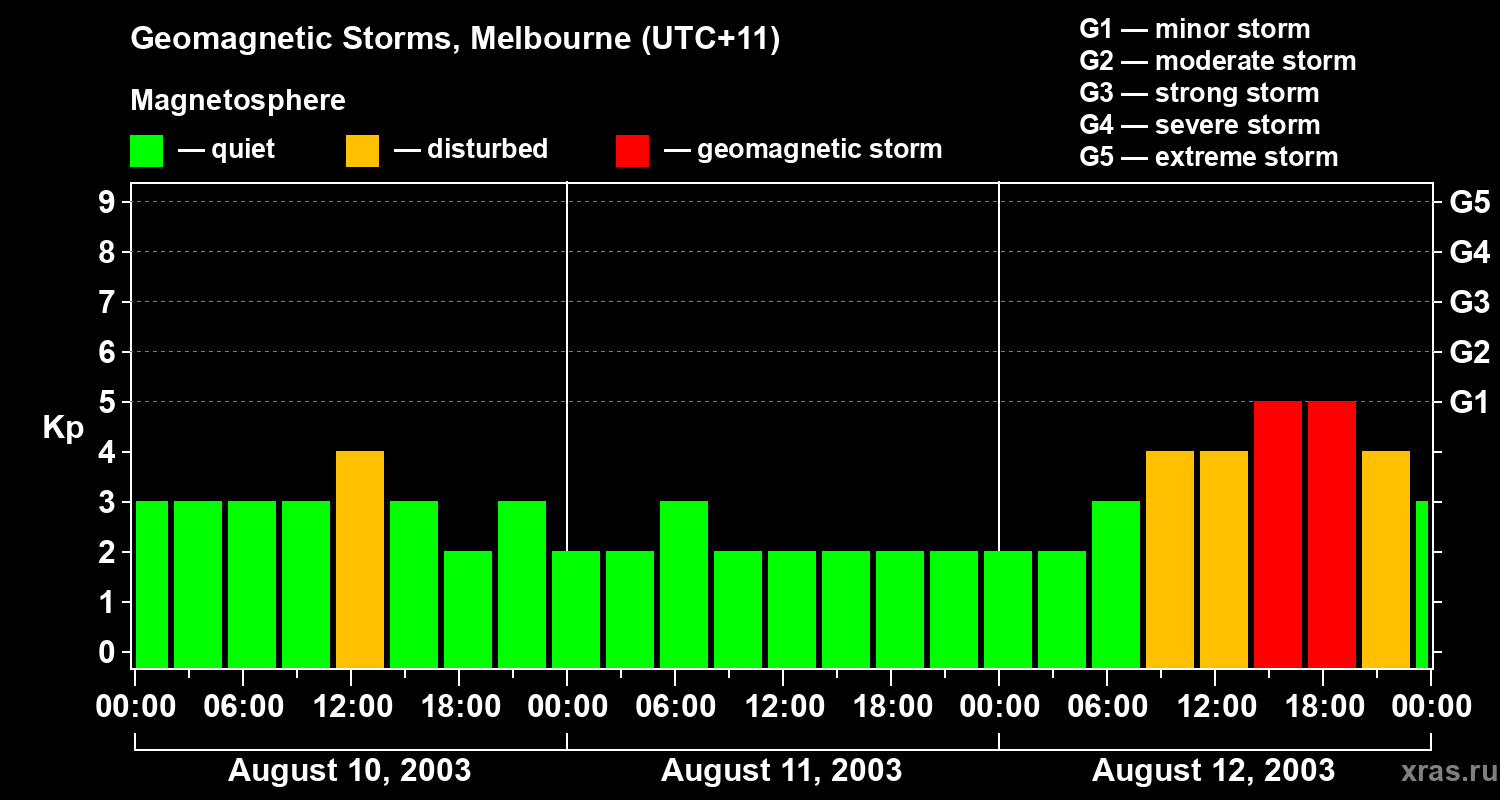 Geomagnetic storms in Melbourne on Aug 12, 2003