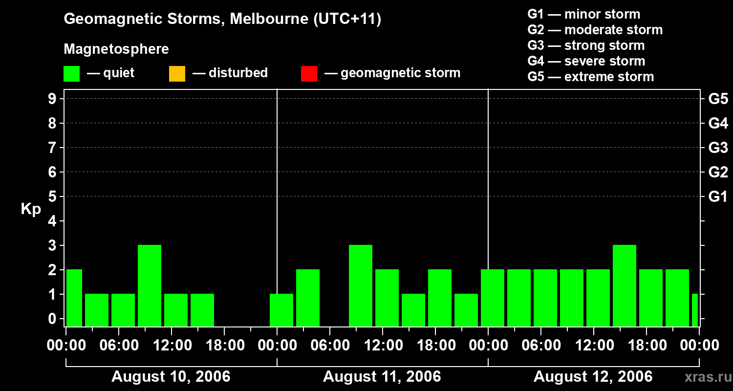 Geomagnetic storms in Melbourne on Aug 12, 2006