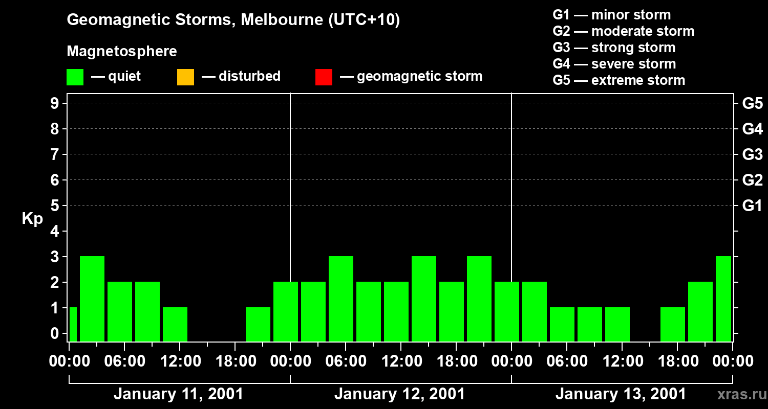 Geomagnetic storms in Melbourne on Jan 13, 2001