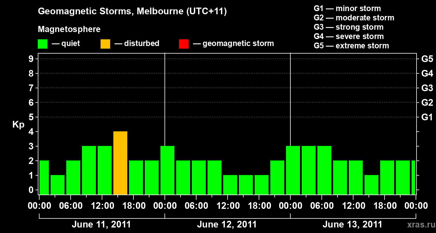Geomagnetic storms in Melbourne on Jun 13, 2011