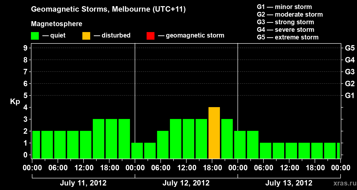 Geomagnetic storms in Melbourne on Jul 13, 2012