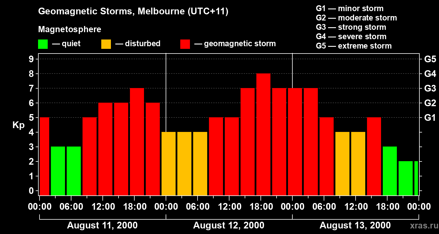 Geomagnetic storms in Melbourne on Aug 13, 2000