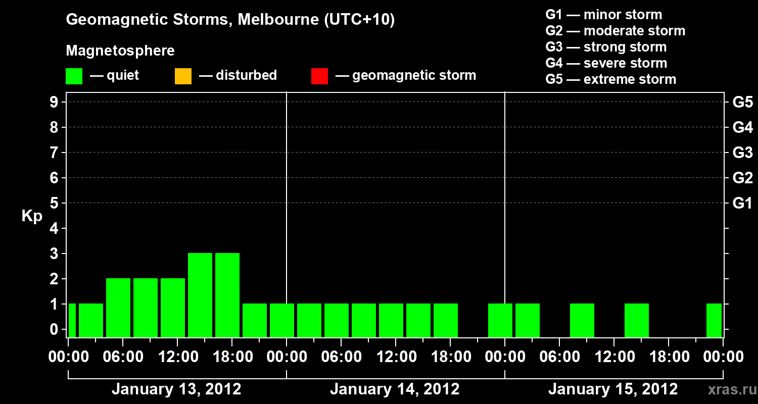 Geomagnetic storms in Melbourne on Jan 15, 2012