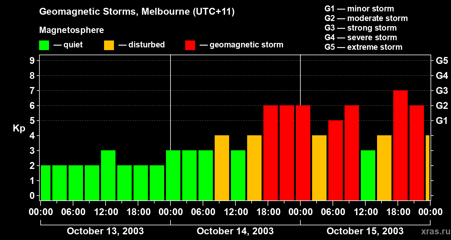 Geomagnetic storms in Melbourne on Oct 15, 2003