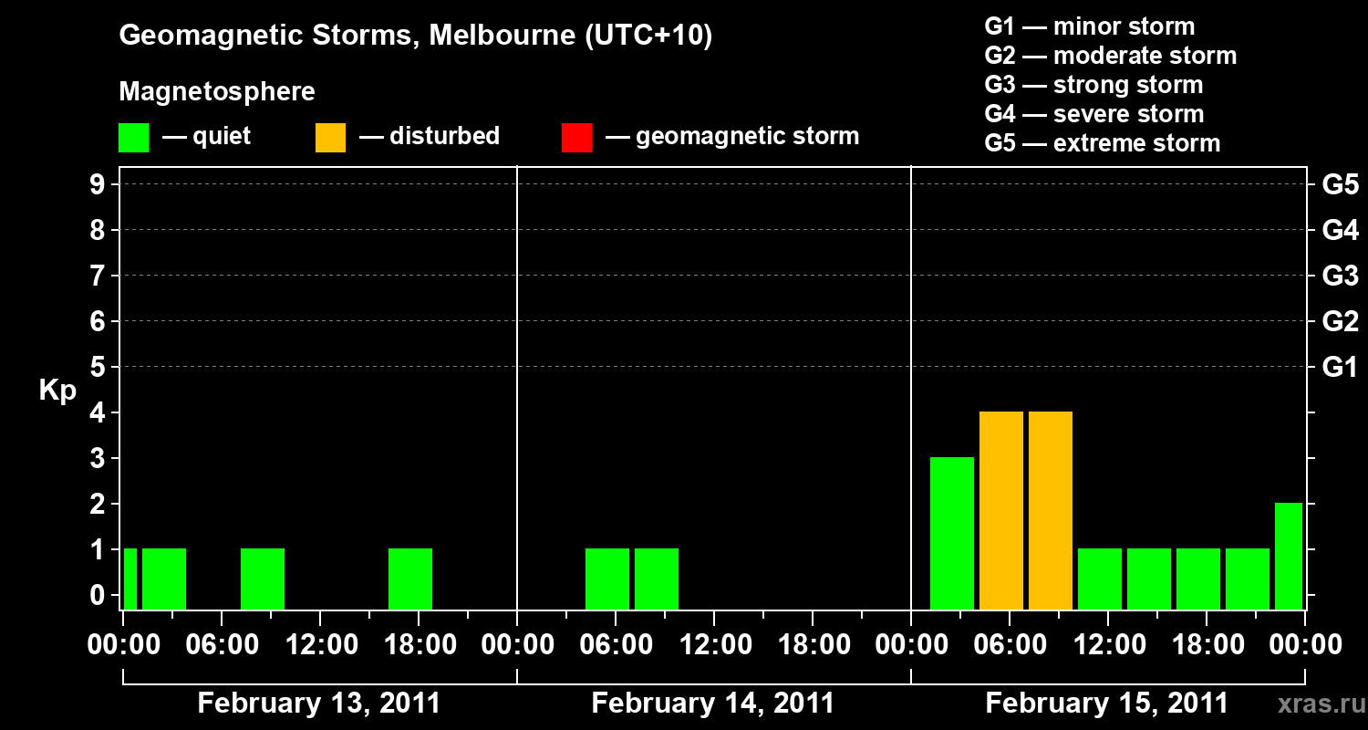 Geomagnetic storms in Melbourne on Feb 15, 2011
