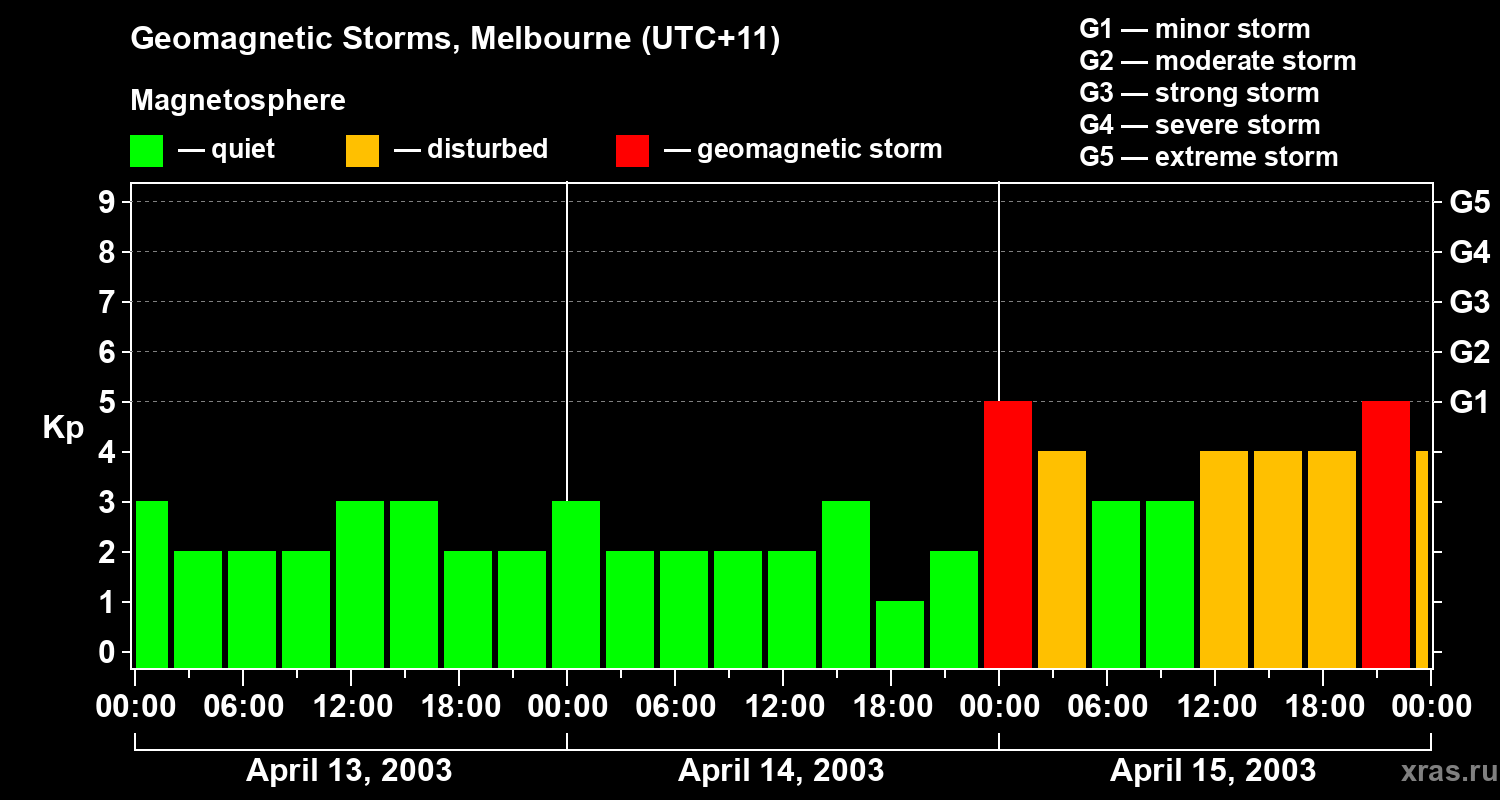 Geomagnetic storms in Melbourne — Apr 15, 2003