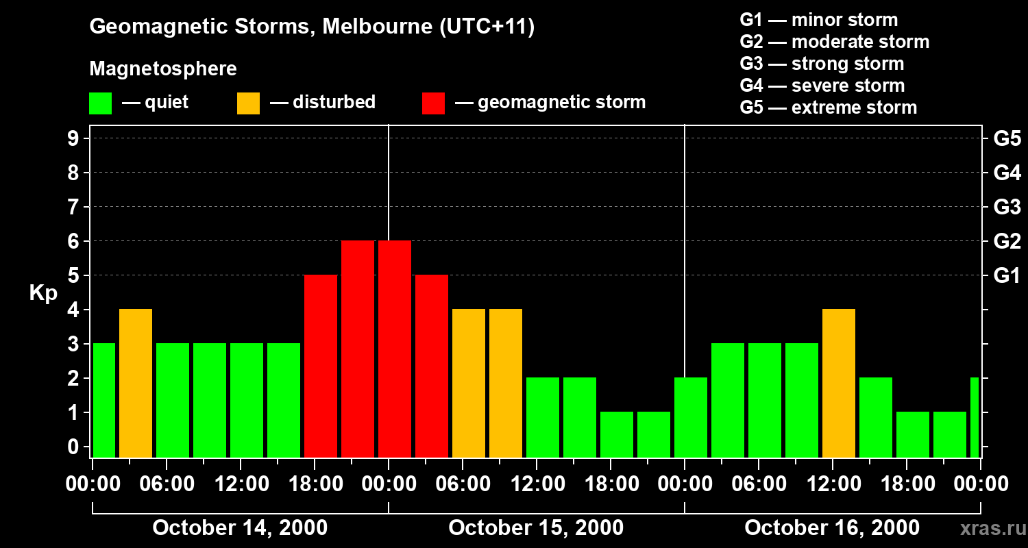 Geomagnetic storms in Melbourne on Oct 16, 2000