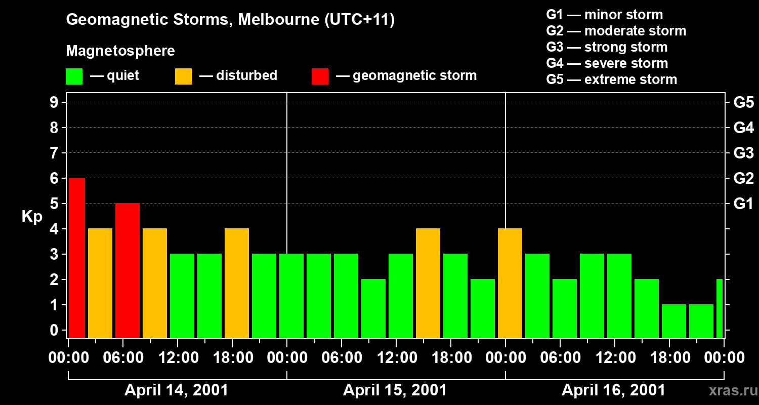 Geomagnetic storms in Melbourne on Apr 16, 2001