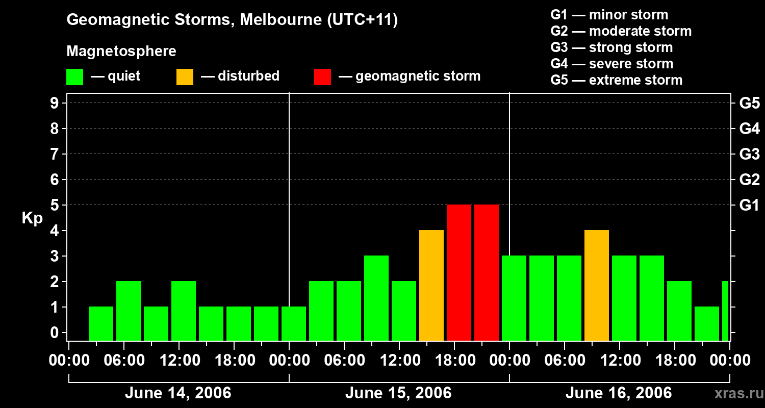 Geomagnetic storms in Melbourne on Jun 16, 2006