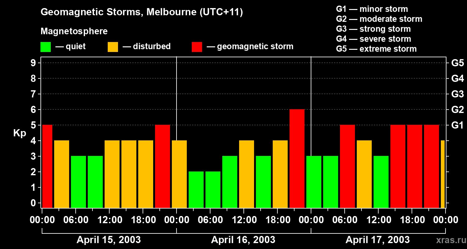 Geomagnetic storms in Melbourne on Apr 17, 2003