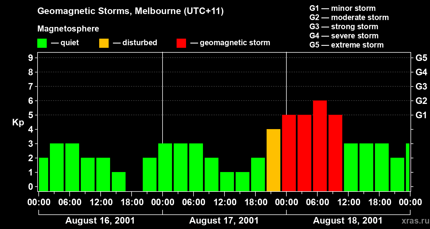 Geomagnetic storms in Melbourne on Aug 18, 2001