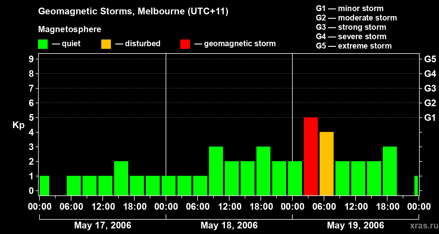 Geomagnetic storms in Melbourne on May 19, 2006