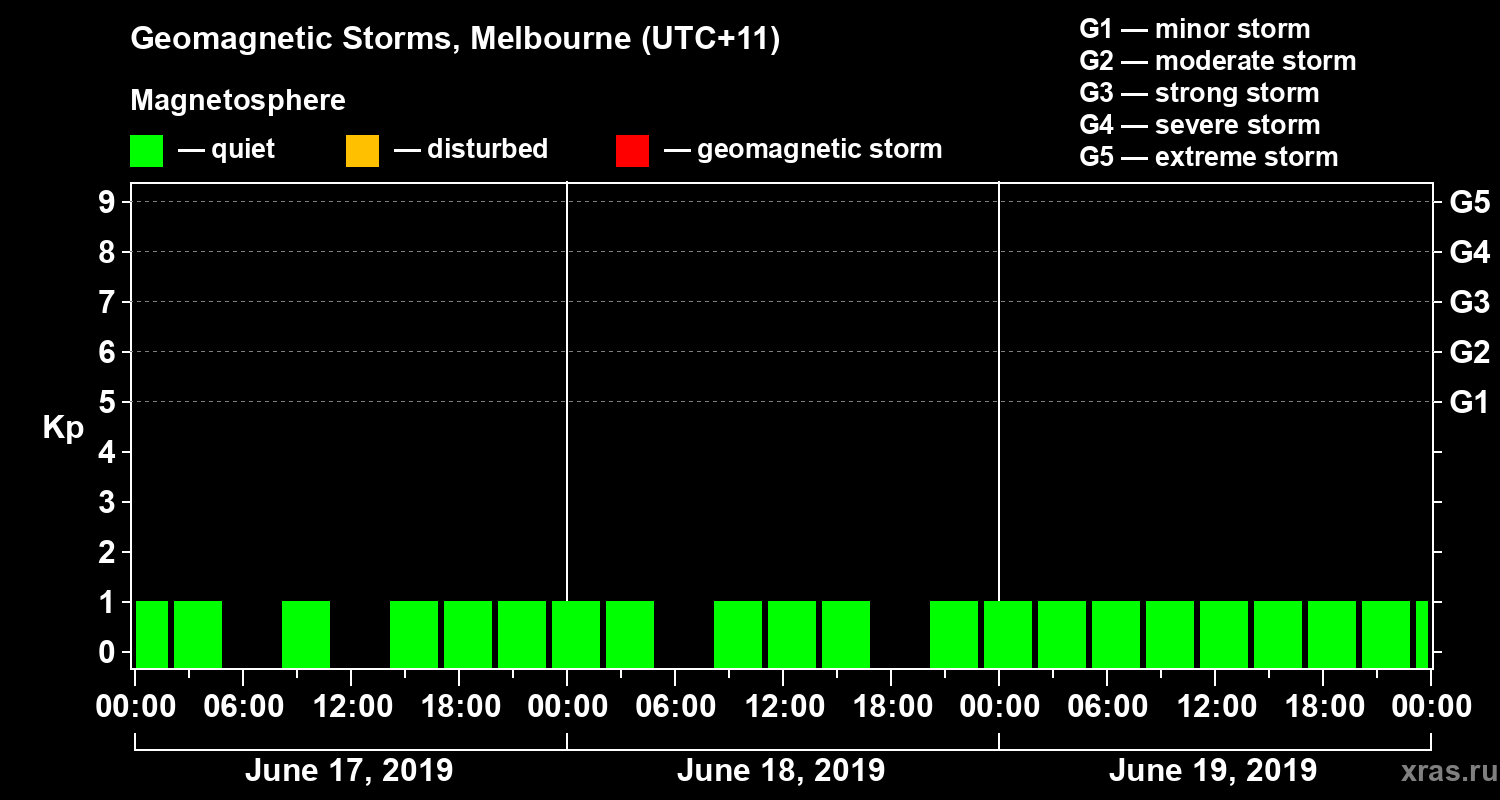 Geomagnetic storms in Melbourne on Jun 19, 2019