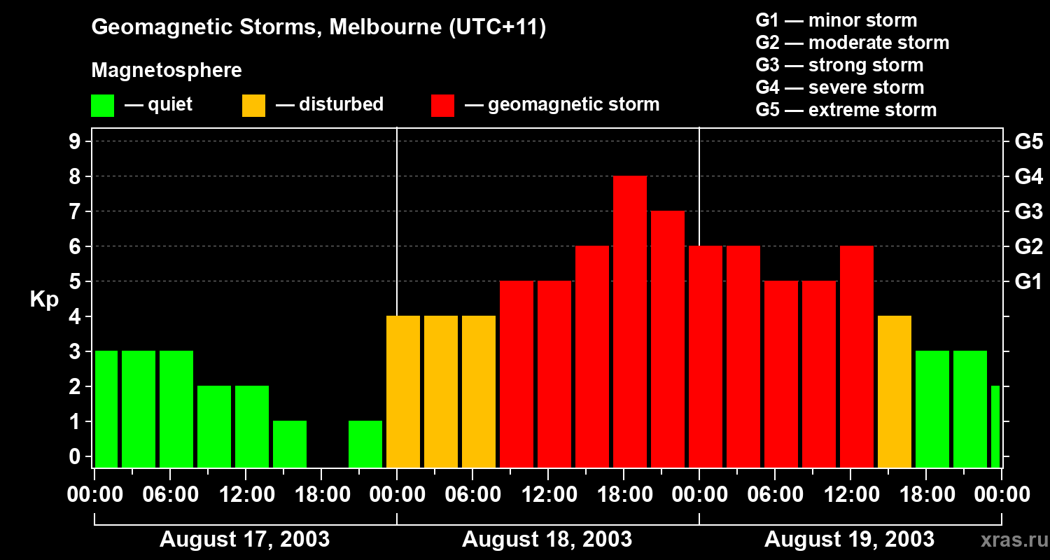 Geomagnetic storms in Melbourne on Aug 19, 2003