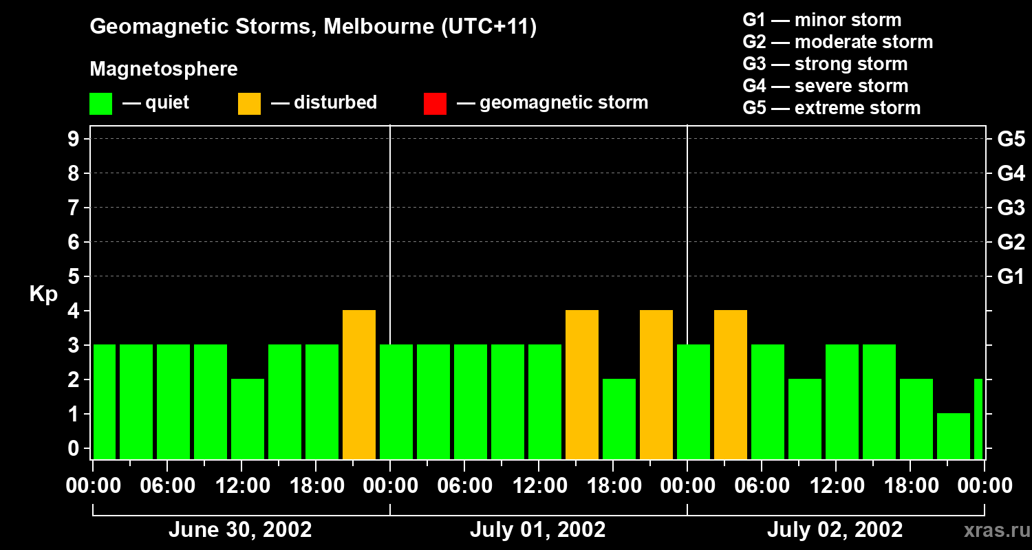 Geomagnetic storms in Melbourne on Jul 02, 2002