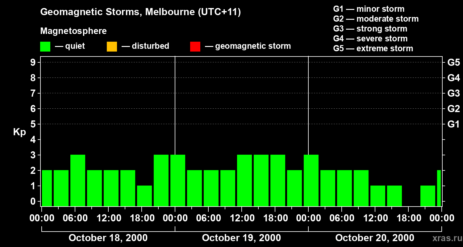 Geomagnetic storms in Melbourne on Oct 20, 2000