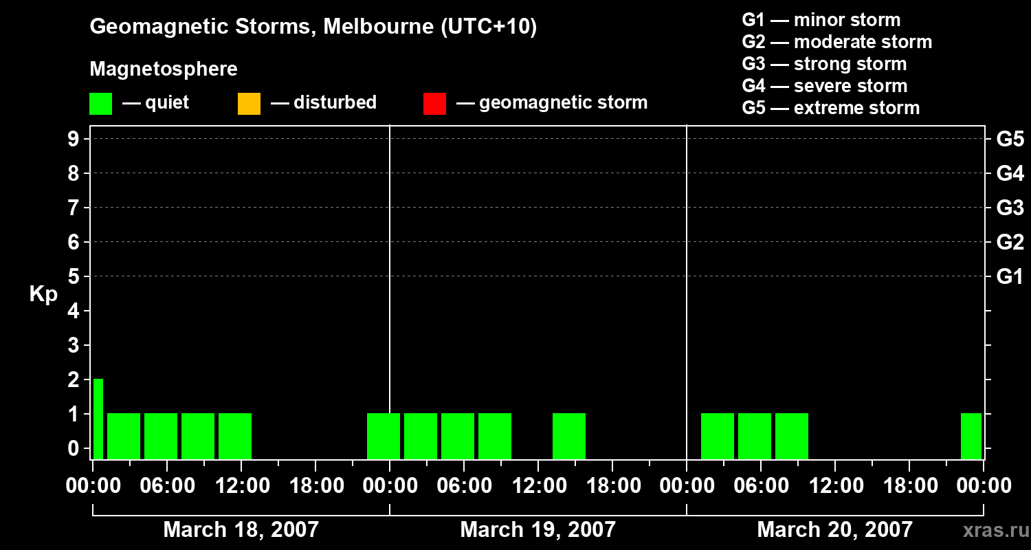 Geomagnetic storms in Melbourne on Mar 20, 2007