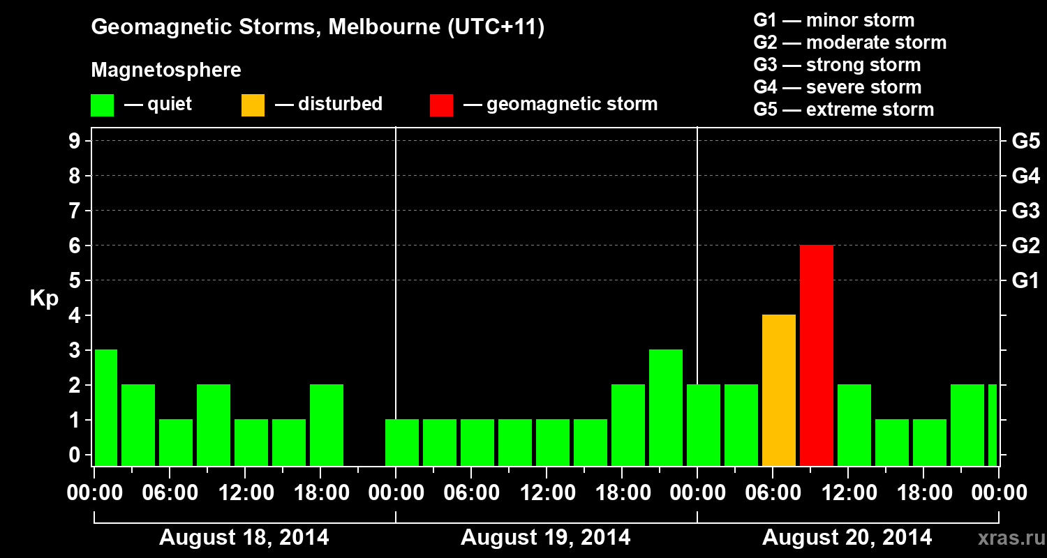 Geomagnetic storms in Melbourne on Aug 20, 2014