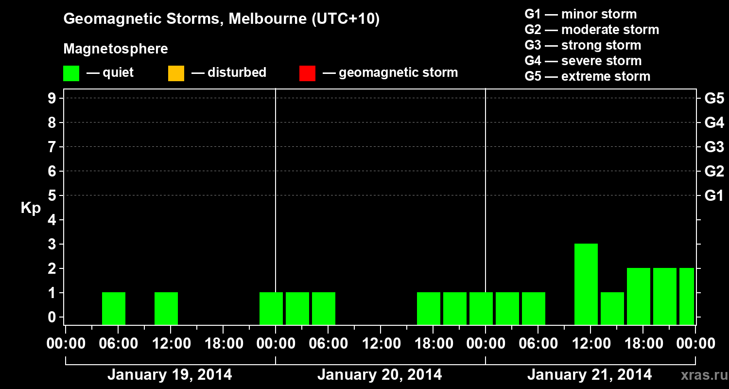 Geomagnetic storms in Melbourne on Jan 21, 2014