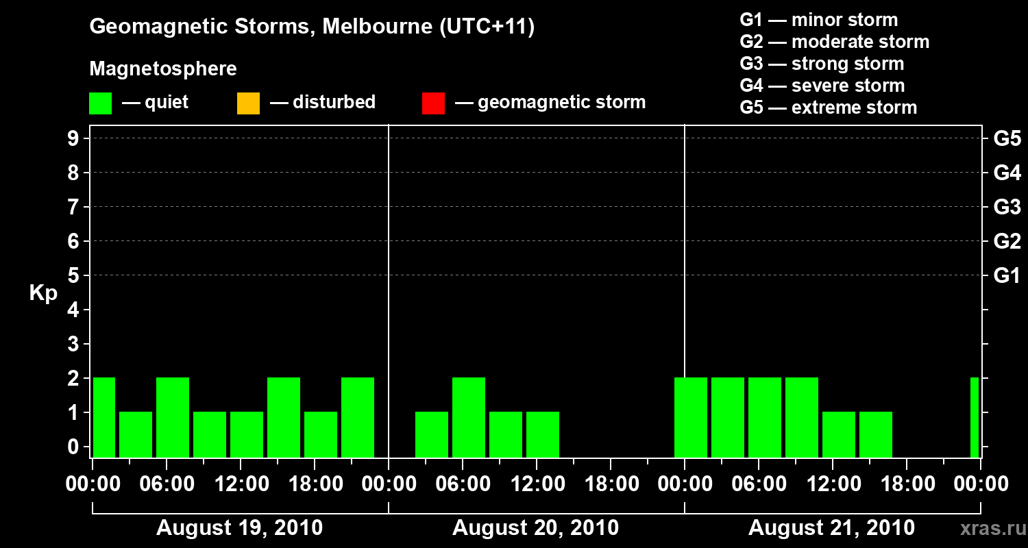Geomagnetic storms in Melbourne on Aug 21, 2010