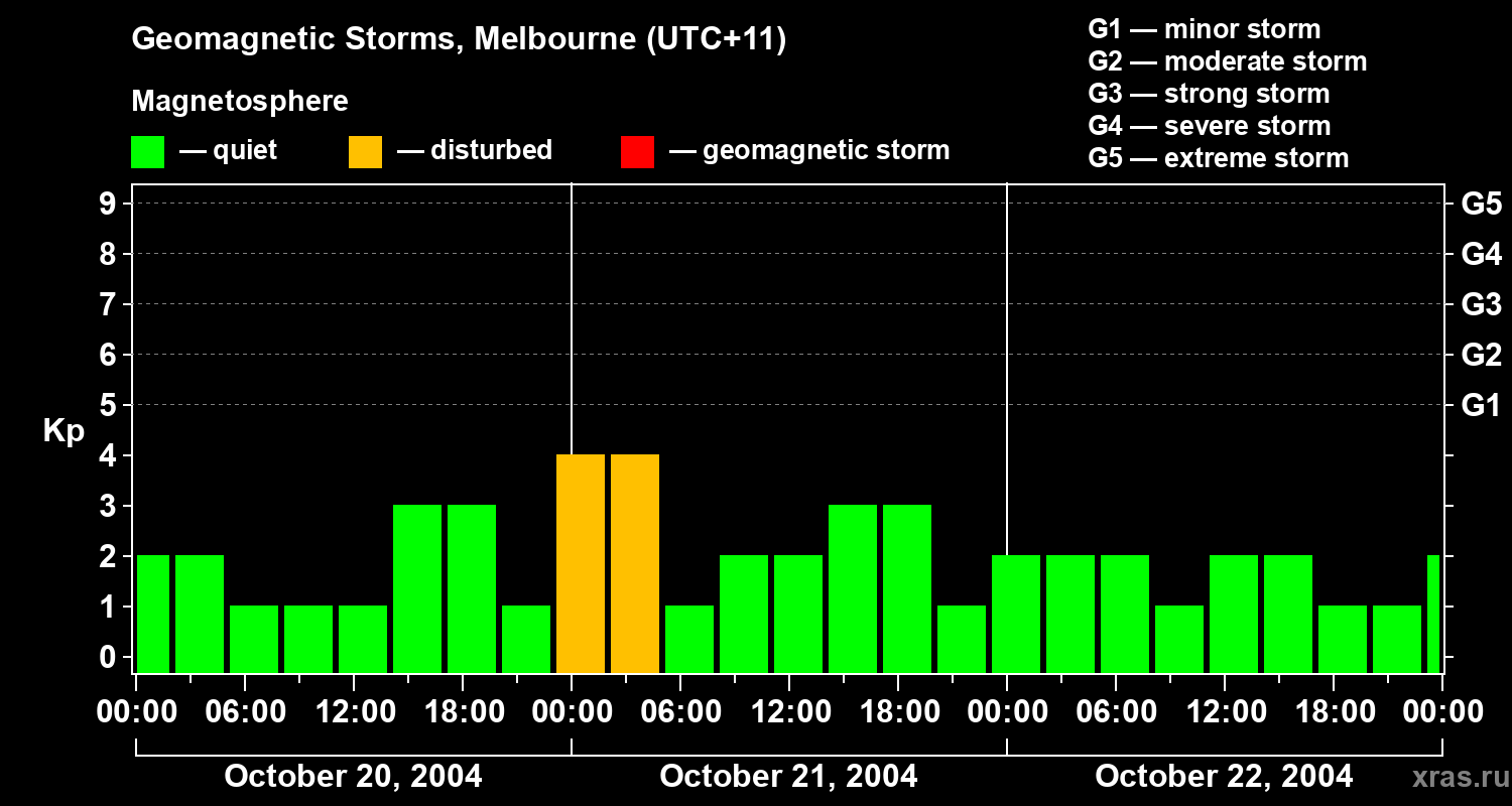 Geomagnetic storms in Melbourne on Oct 22, 2004