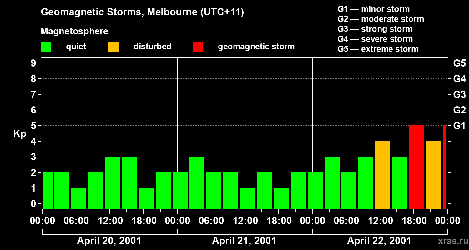 Geomagnetic storms in Melbourne on Apr 22, 2001