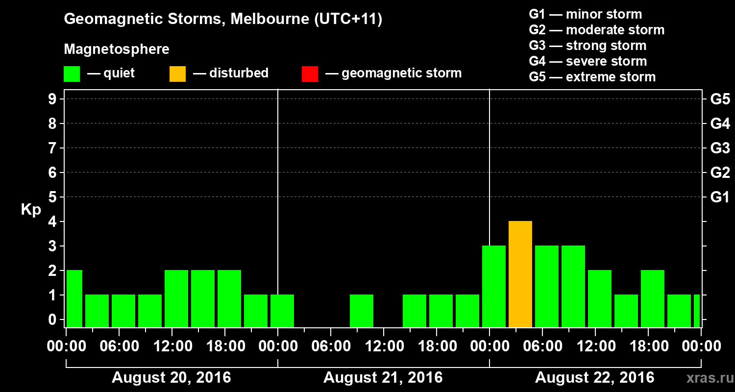 Geomagnetic storms in Melbourne — Aug 22, 2016
