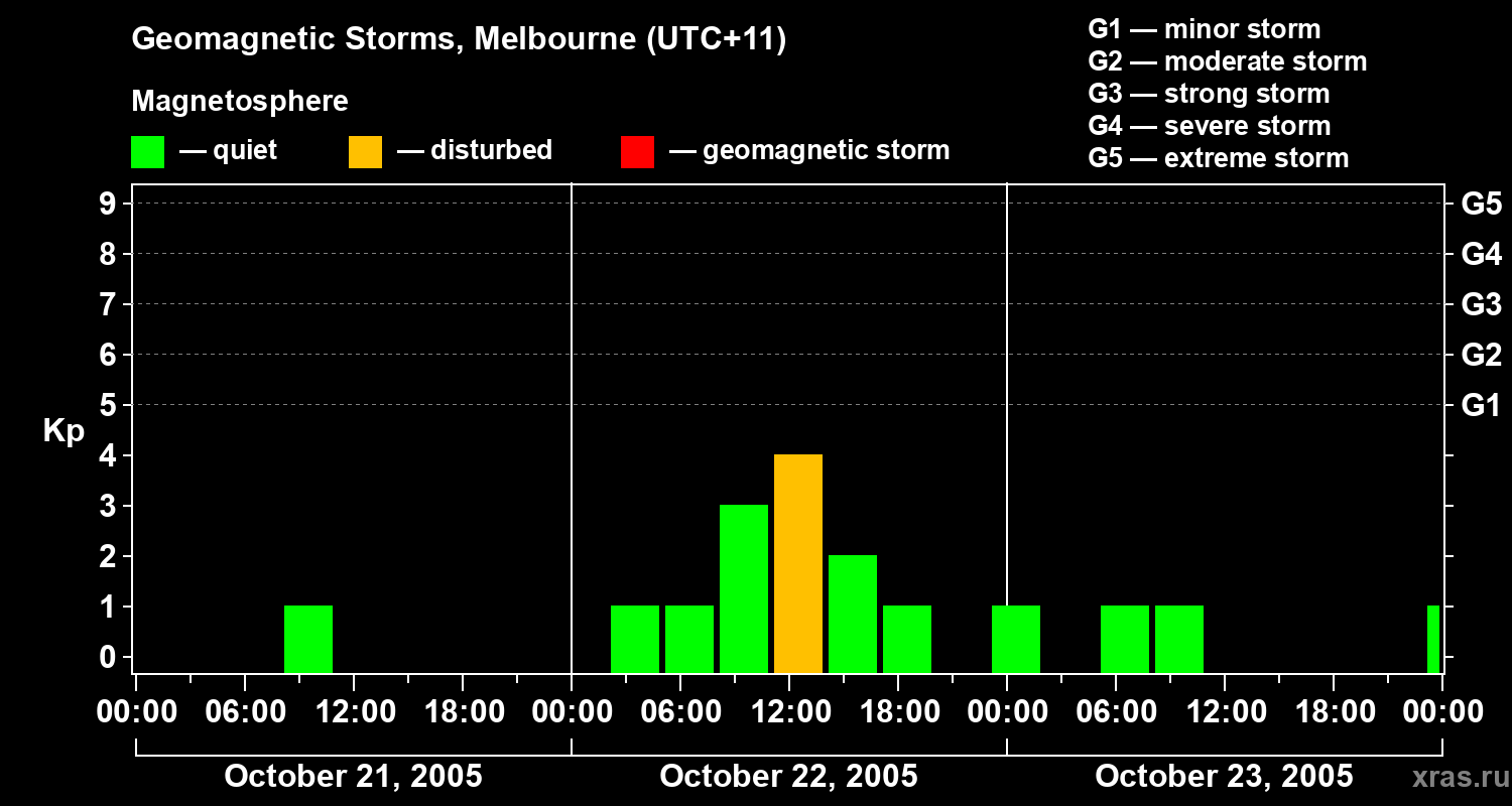 Geomagnetic storms in Melbourne on Oct 23, 2005