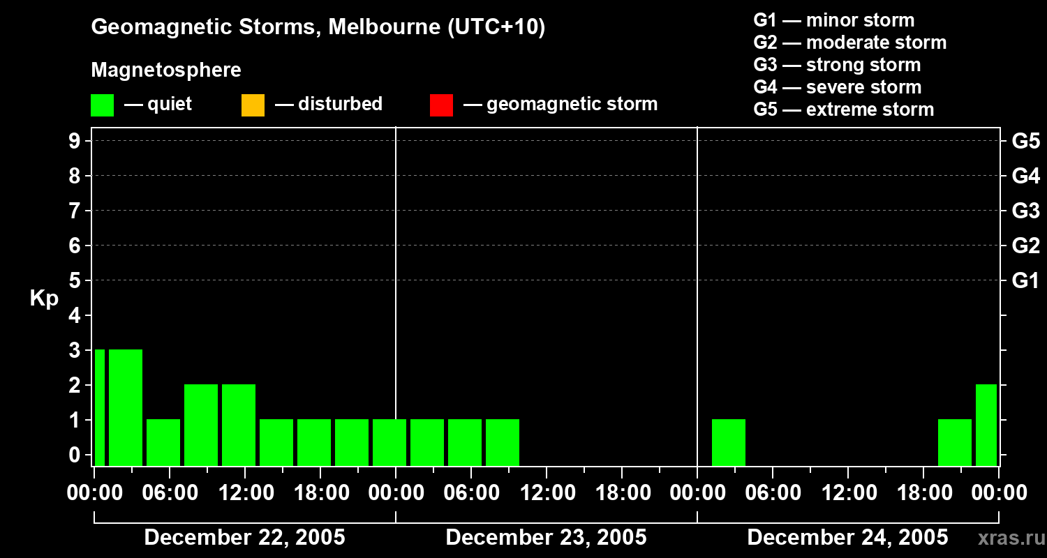 Geomagnetic storms in Melbourne on Dec 24, 2005