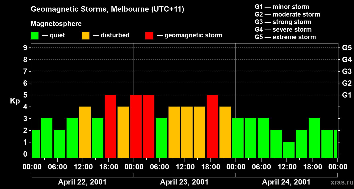 Geomagnetic storms in Melbourne on Apr 24, 2001