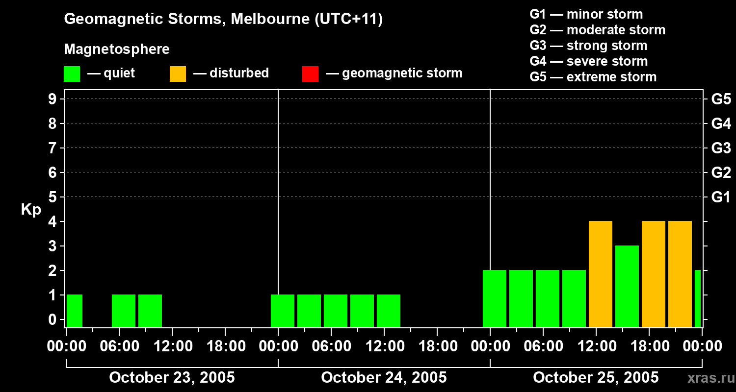Geomagnetic storms in Melbourne on Oct 25, 2005