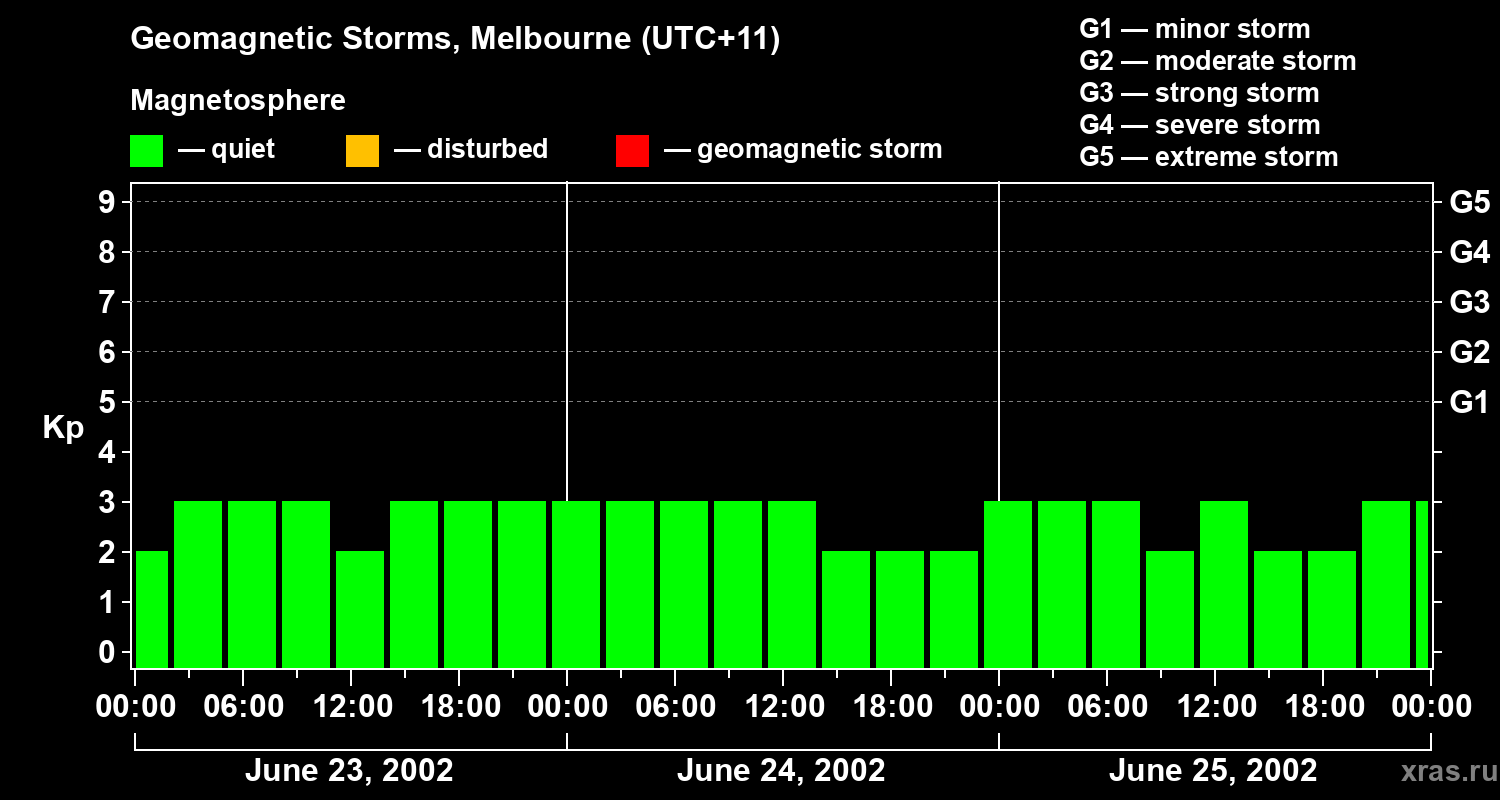 Geomagnetic storms in Melbourne on Jun 25, 2002