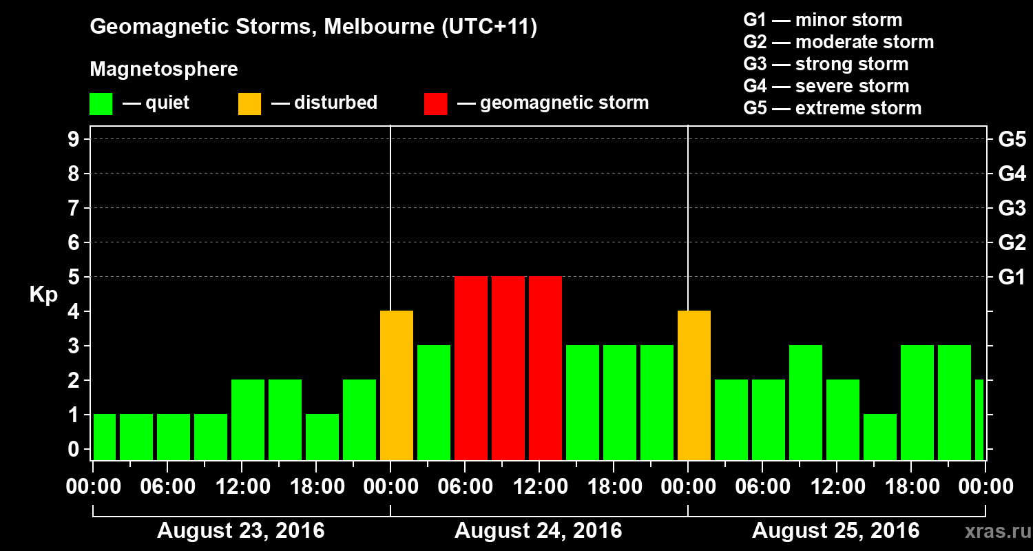 Geomagnetic storms in Melbourne — Aug 25, 2016