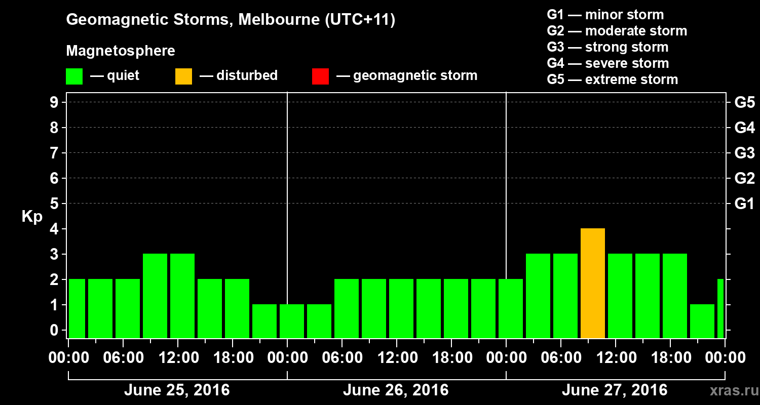 Geomagnetic storms in Melbourne — Jun 27, 2016