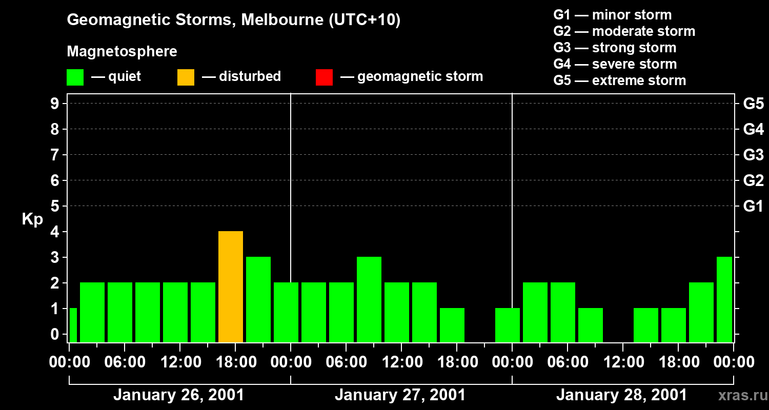 Geomagnetic storms in Melbourne on Jan 28, 2001
