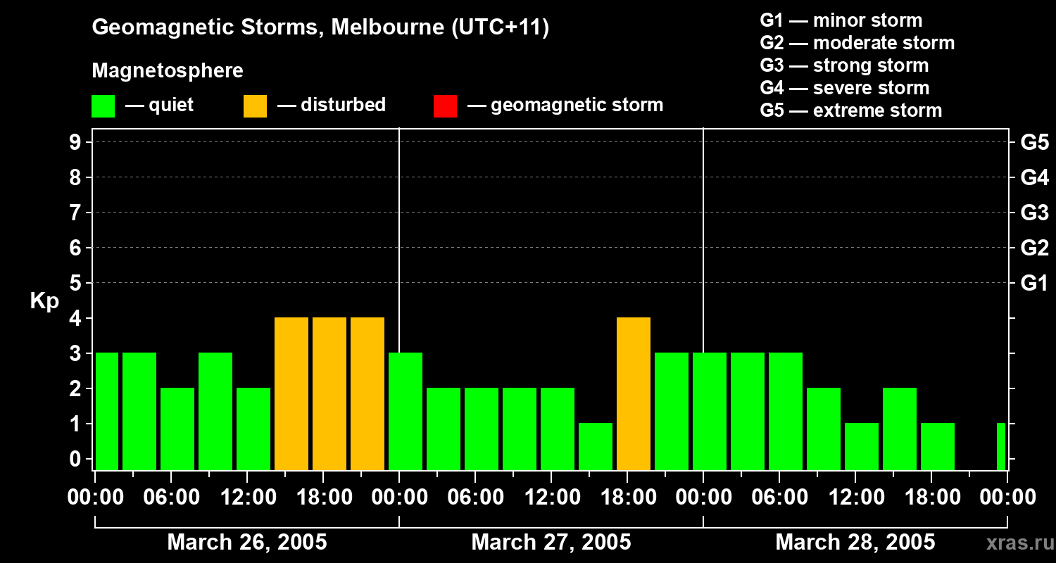 Geomagnetic storms in Melbourne on Mar 28, 2005