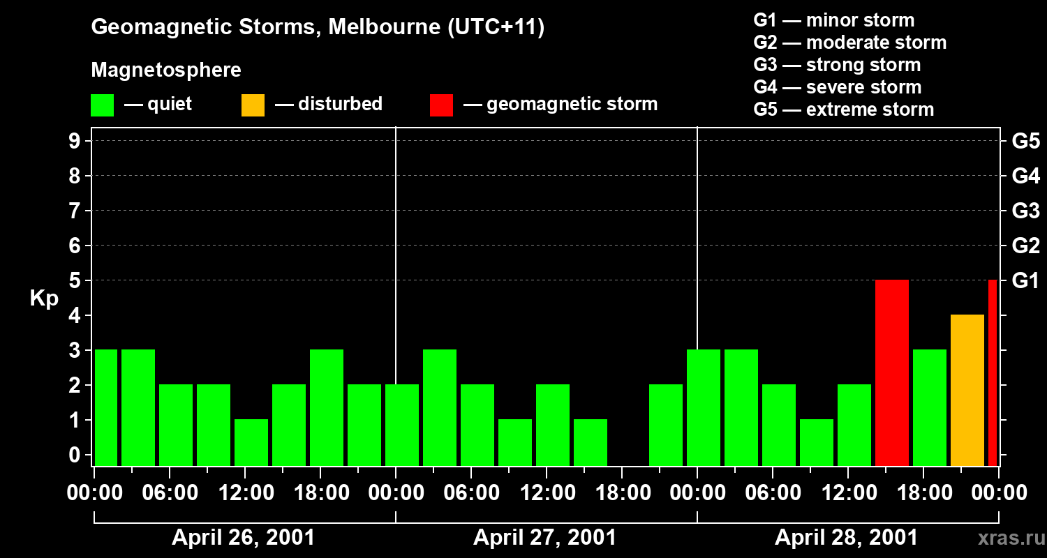 Geomagnetic storms in Melbourne on Apr 28, 2001
