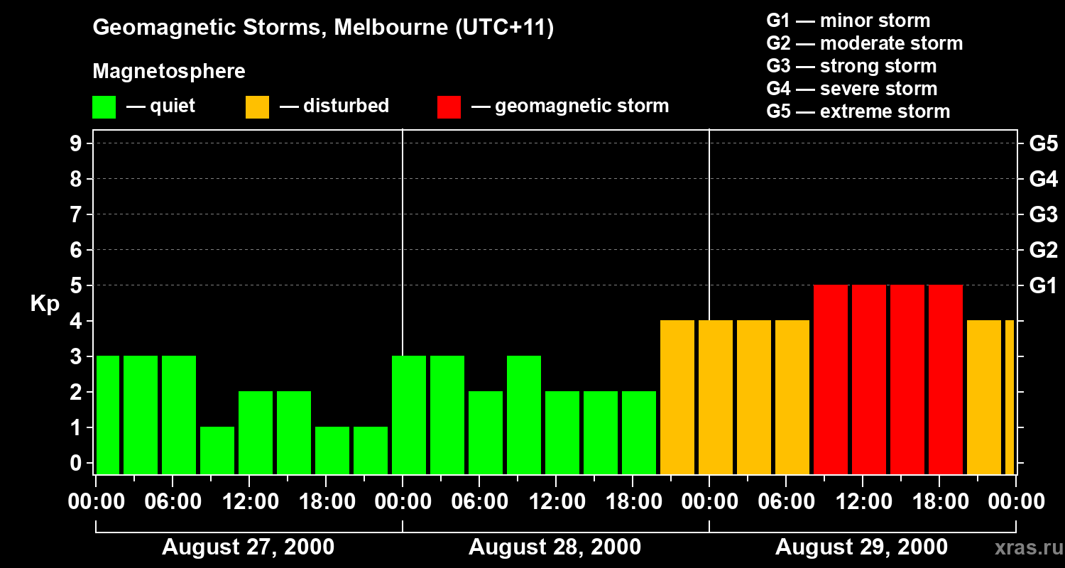 Geomagnetic storms in Melbourne on Aug 29, 2000