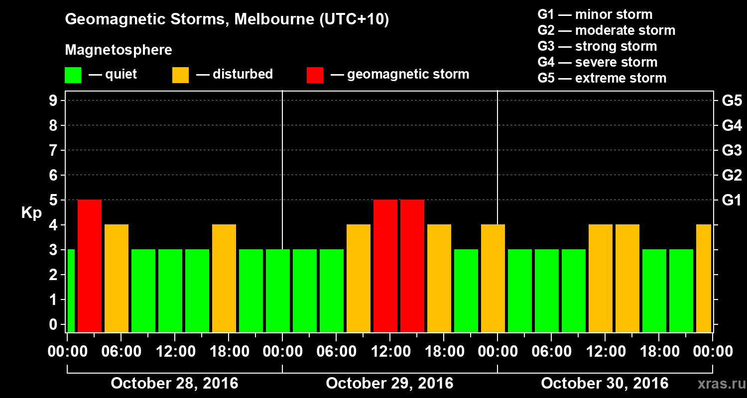 Geomagnetic storms in Melbourne in October 2016