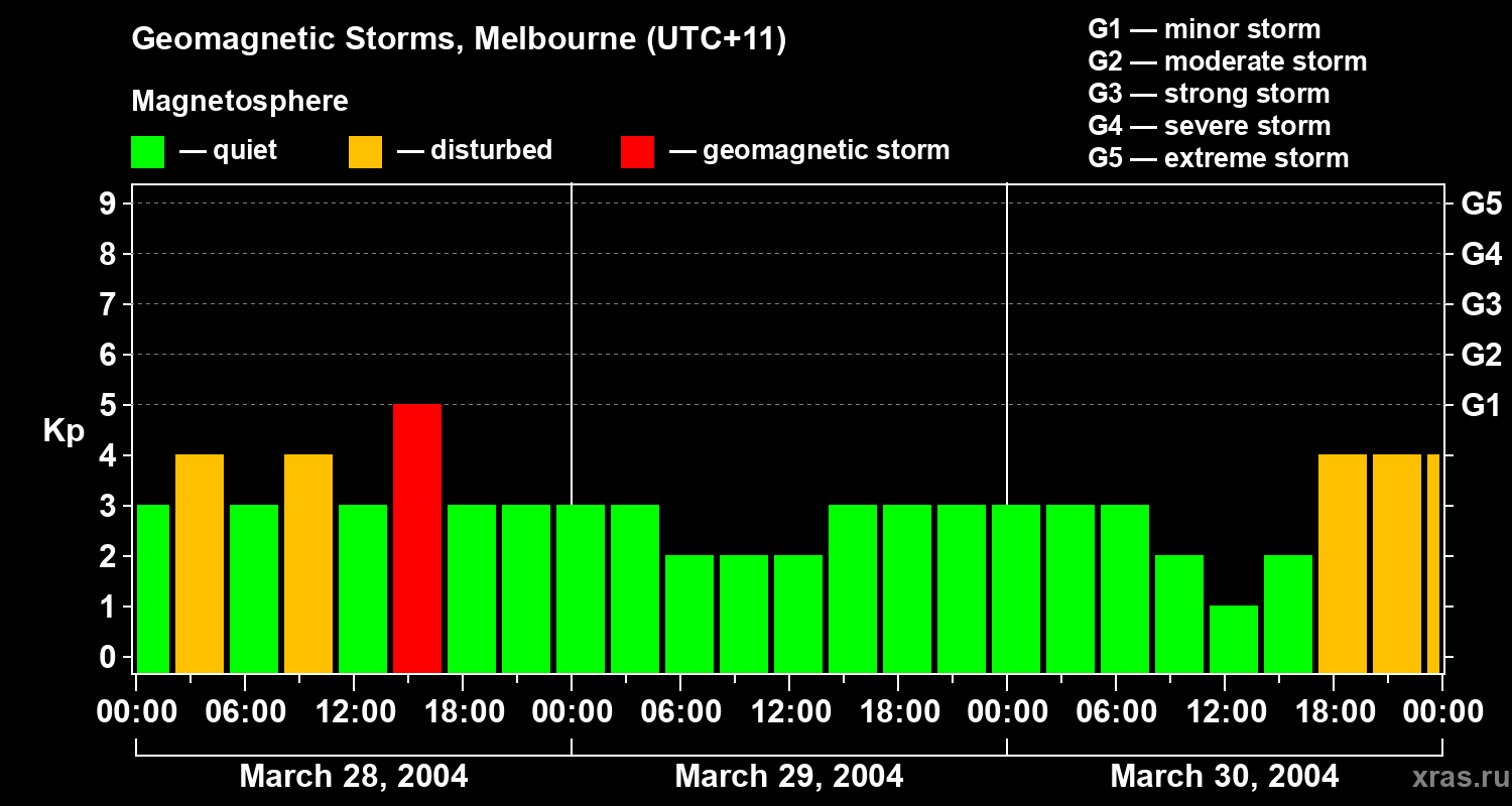Geomagnetic storms in Melbourne on Mar 30, 2004