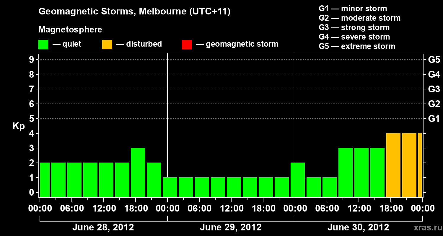 Geomagnetic storms in Melbourne on Jun 30, 2012