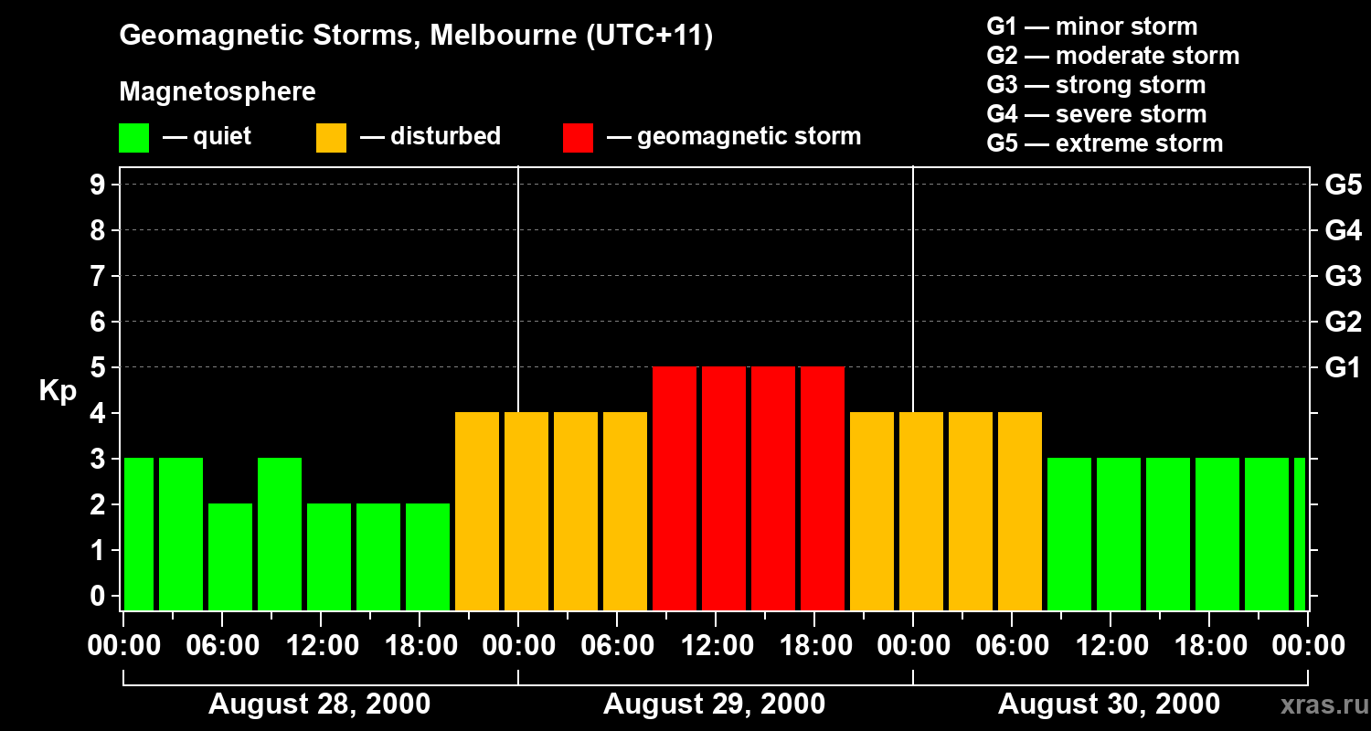 Geomagnetic storms in Melbourne on Aug 30, 2000