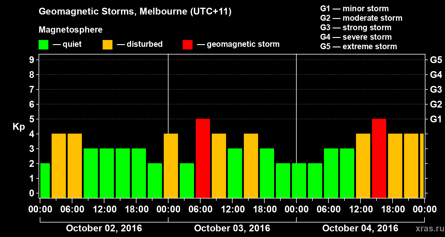 Geomagnetic storms in Melbourne on Oct 04, 2016