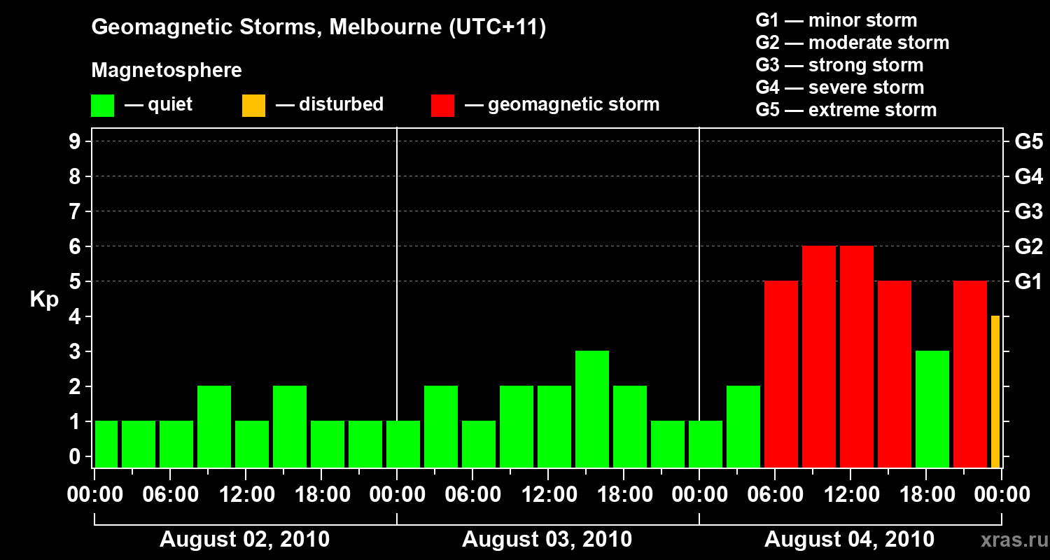 Geomagnetic storms in Melbourne — Aug 04, 2010
