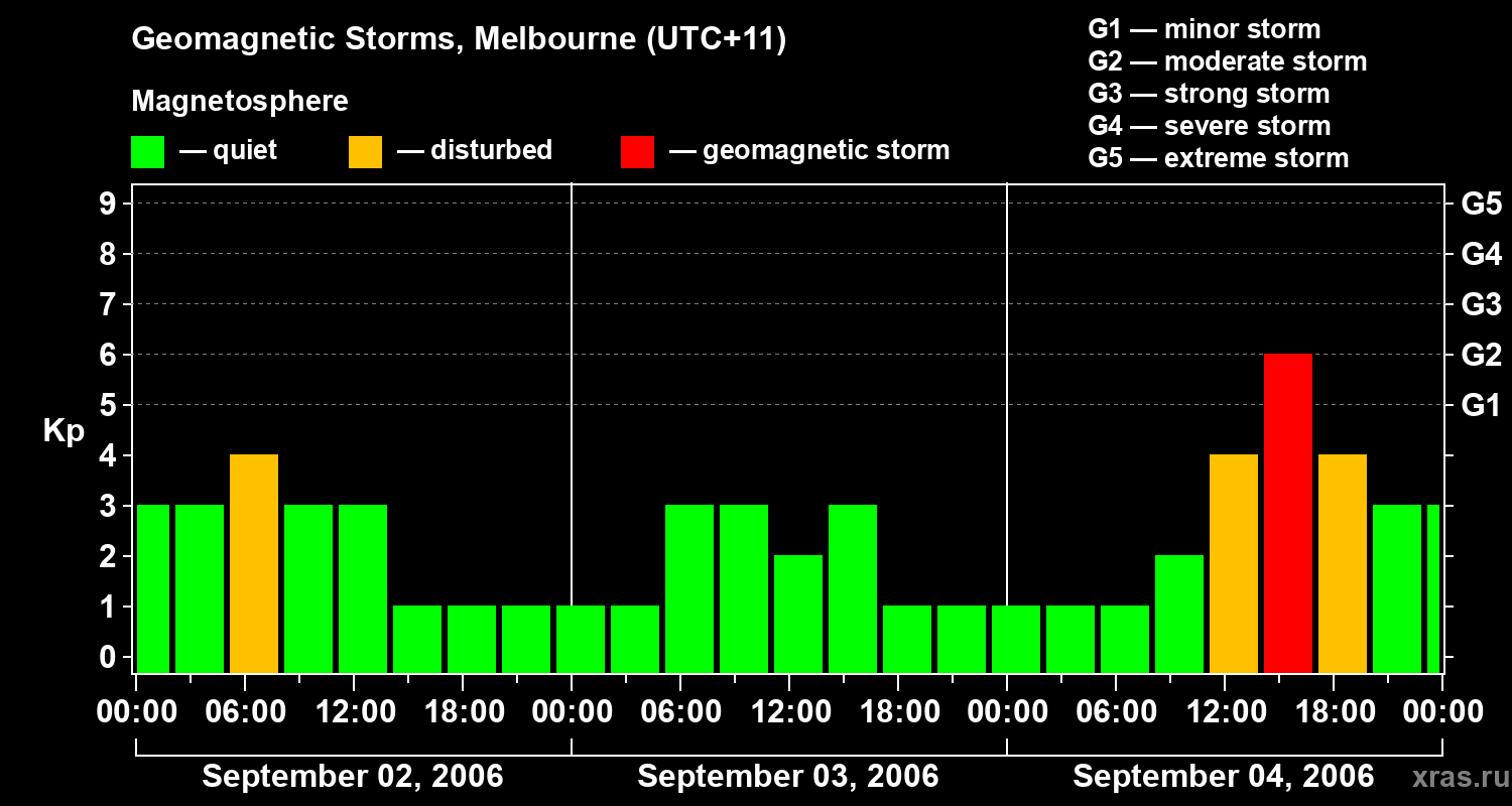 Geomagnetic storms in Melbourne on Sep 04, 2006