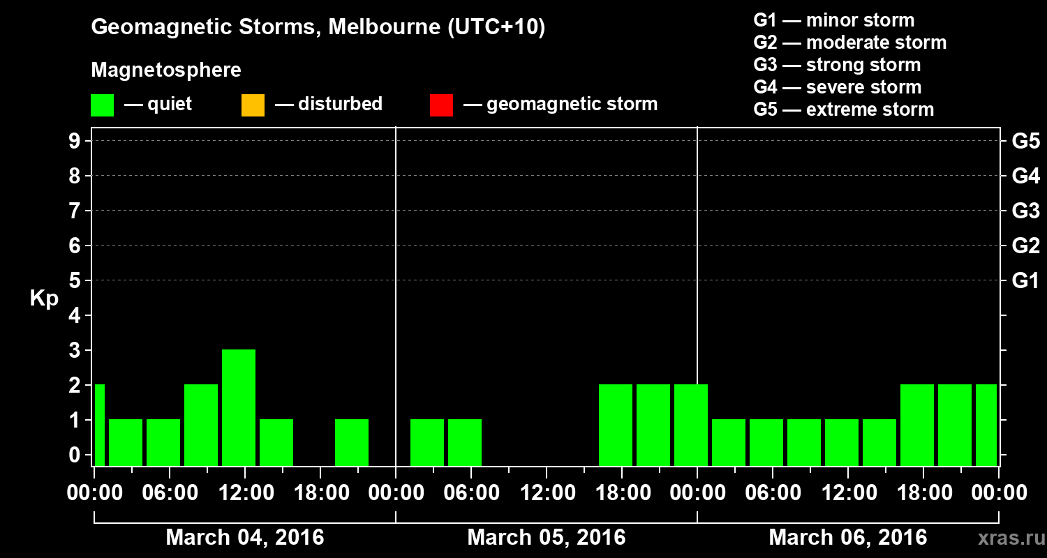 Geomagnetic storms in Melbourne on Mar 06, 2016